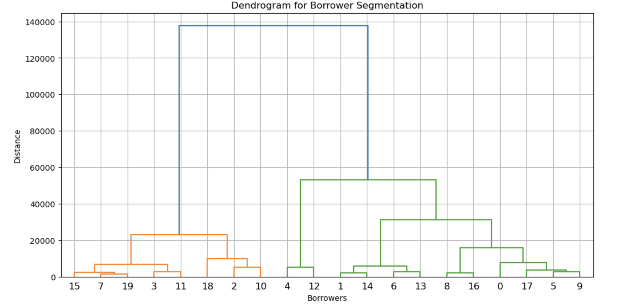 Let’s build a Hierarchical Clustering model to segment borrowers based on their credit profiles.