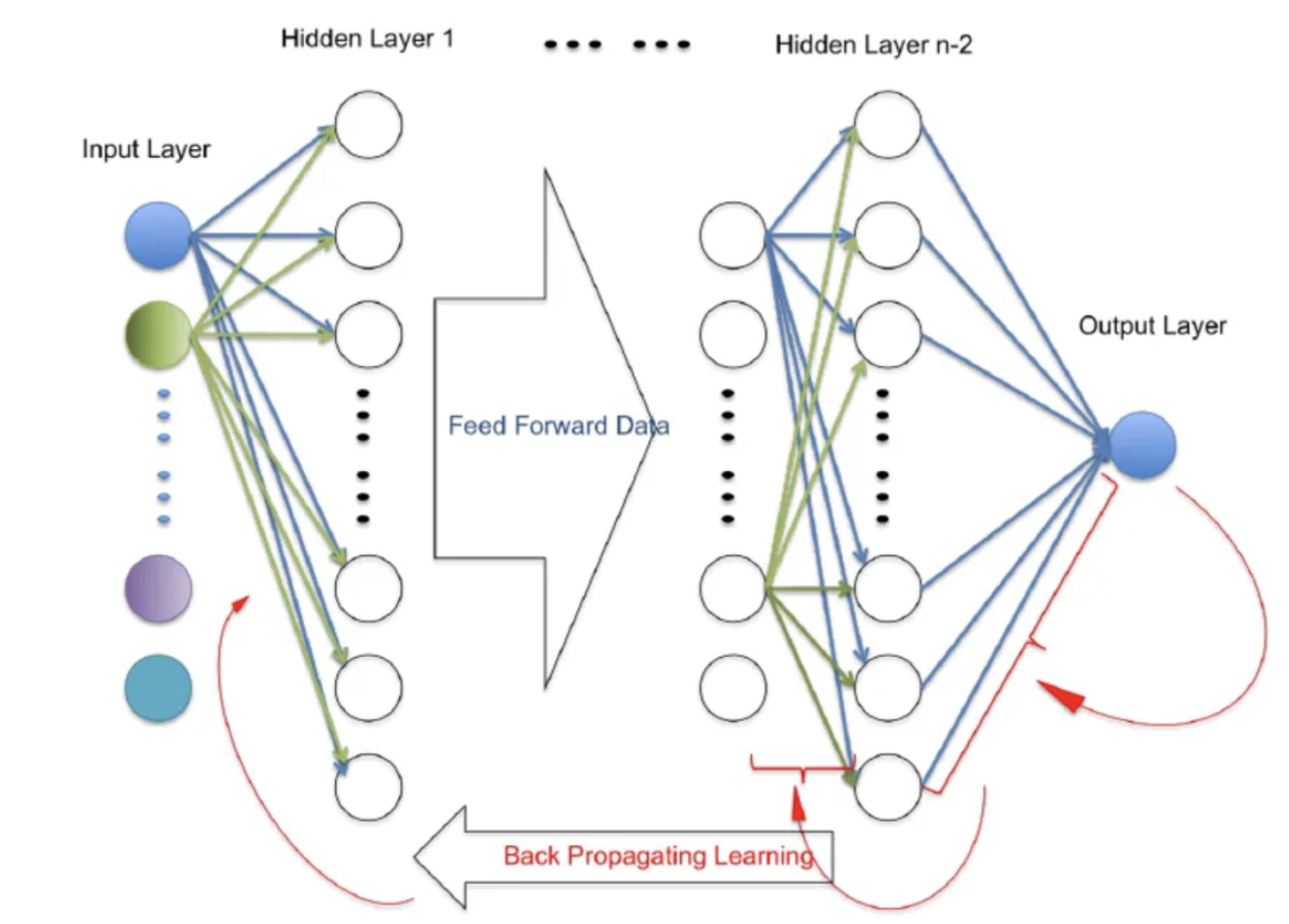 - Backpropagation: The error is propagated backward through the network, adjusting the weights of neurons to minimize the loss.