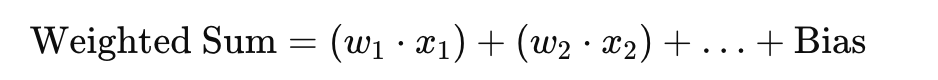 Summation = (W1 * X1) + (W2 * X2) + ... + (Wn * Xn) + Bias
