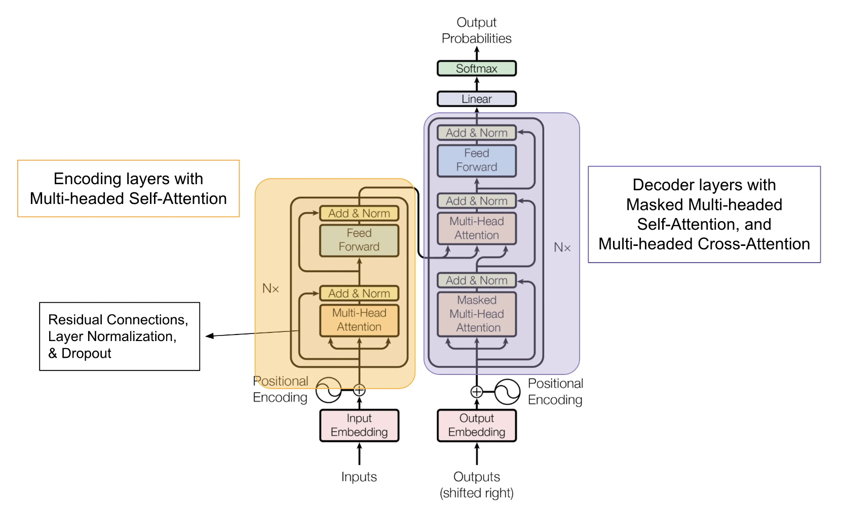 - Encoder: The encoder processes the input data (like a sentence) and converts it into a context-rich representation. It does this using layers of self-attention and feedforward neural networks. This representation is a distilled version of the input, retaining its meaning and context.